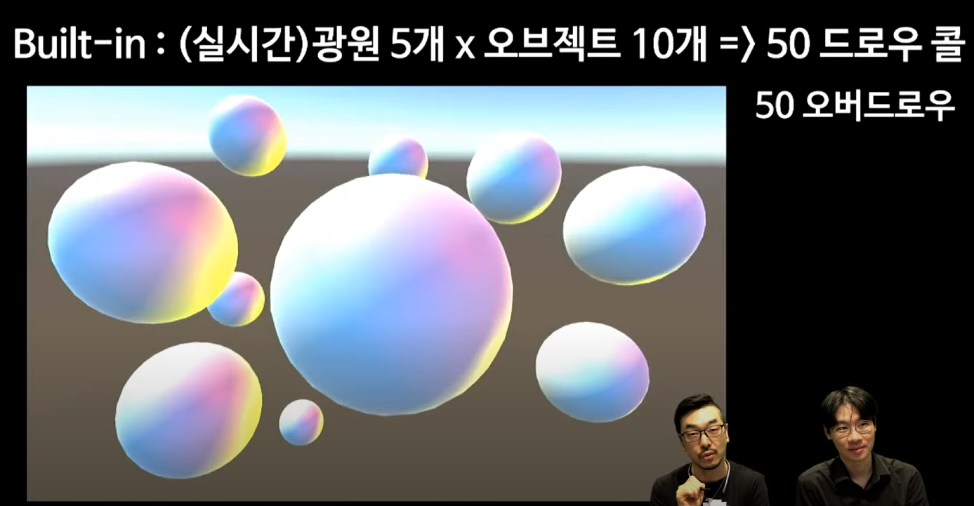 Loop를 돌면서 처리하기 때문에 한 번의 드로우콜로 라이트 처리 가능 (밑의 for문)