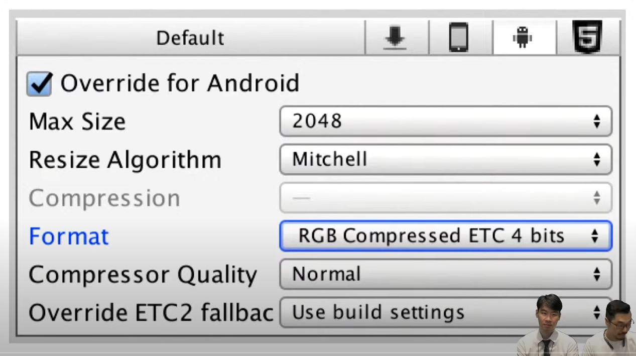 GPU에서 사용하는 텍스처들은 ETC/PVRTC 등 GPU 전용 포맷들로 변환해서 사용하게 됨
