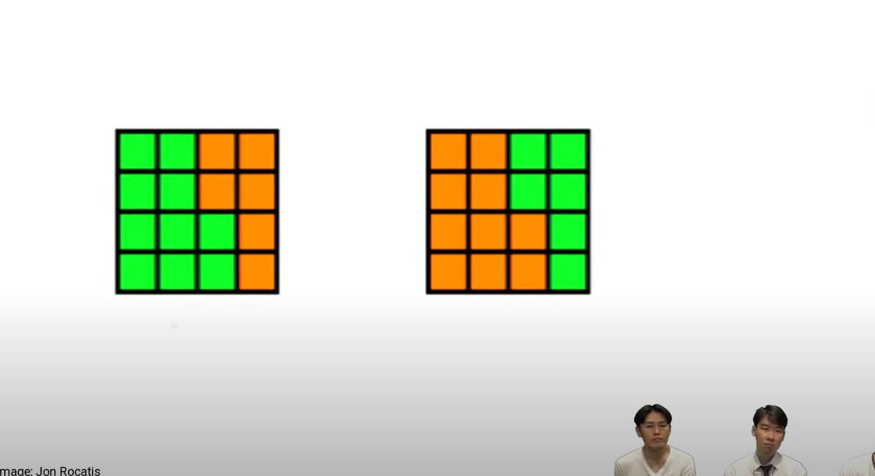 왼쪽에서 픽셀을 한칸씩 옆으로 밀고, 180도 돌리면 같아지기 때문