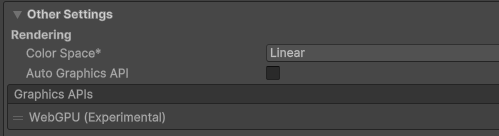 Graphics APIs 를 WebGPU로 설정해야 작동한다
