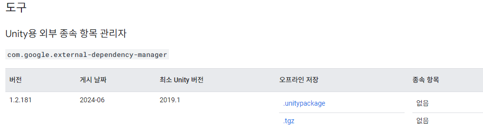 https://developers.google.com/unity/archive?hl=ko#external_dependency_manager_for_unity